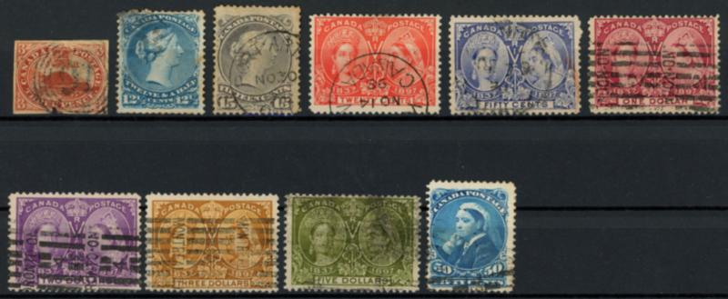 Canada 1851-1939 used collection with better classical stamps incl. Jubilee stamps 1897 Mich. 38-51 and 53 (S.G. 129-140 ex. 139) (Image)