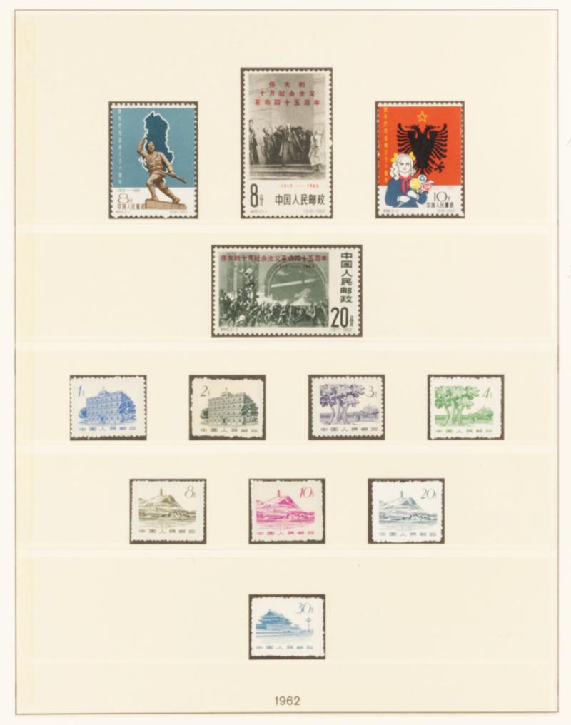 China 1962. Support for China (643-645**, 10 f. unregular perf at bottom), Support for Algeria (646-647**), Folk Dances (657-662*), October revolution (663-664**), Independence Albania (665-666**) and Buildings (675-682*) . Michel 970,- (Image)