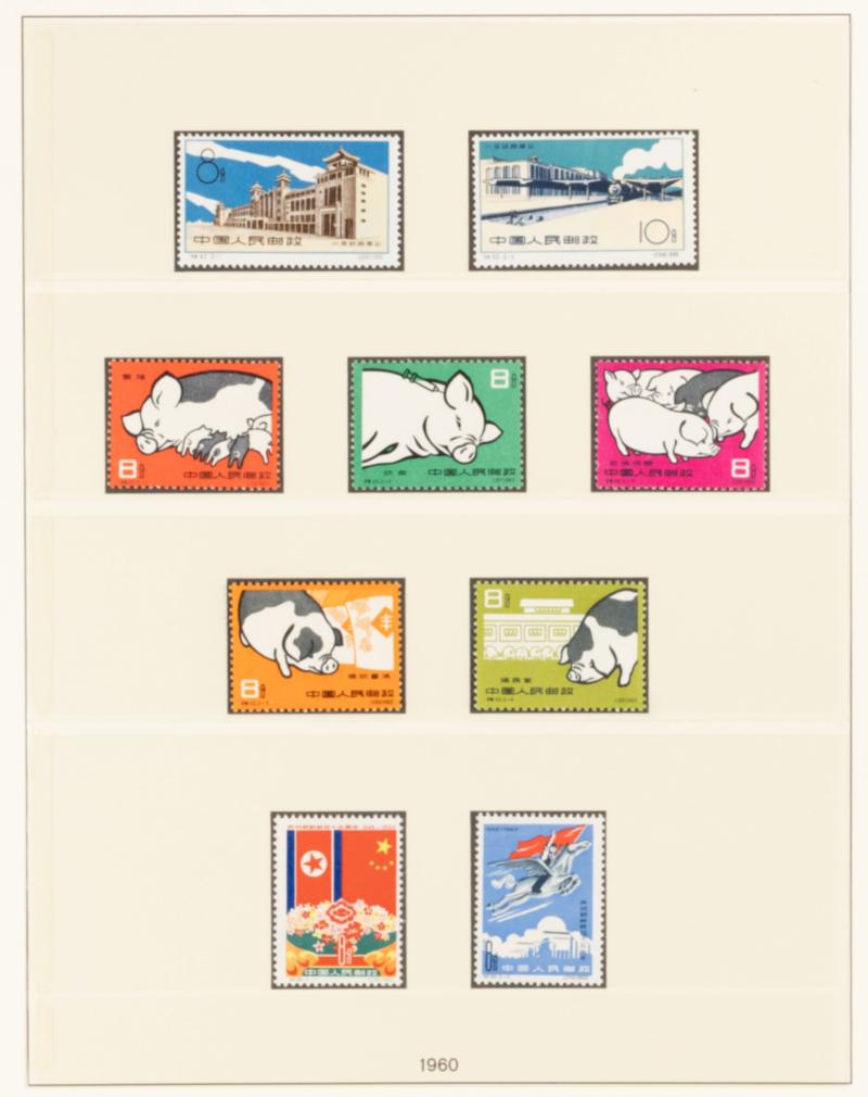 China 1960 Railway station Peking, Pig-breeding and 15th anniversary of liberation of Korea. MNH sets. Michel nrs. 546-550**, 553-554** and 555-556** € 640.- (Image)