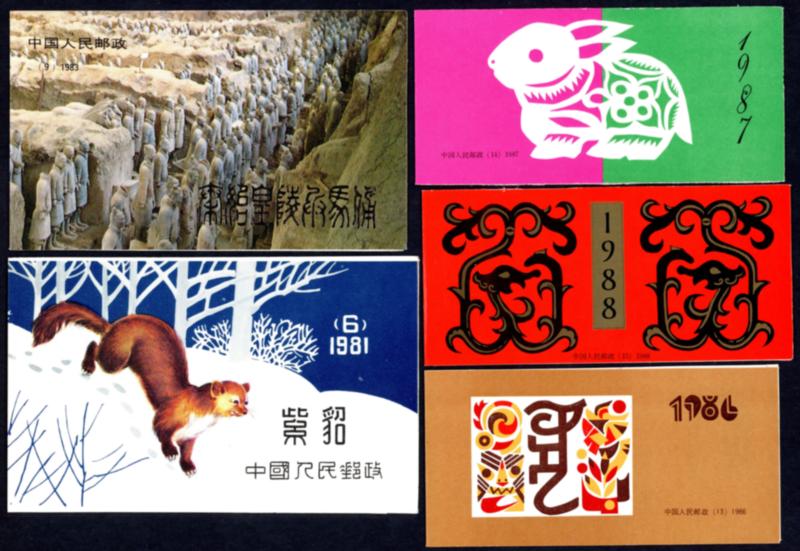 China 1980-1990. 12 different stamps booklets incl. SB2/3, 6/9 and 11/17. (Image)