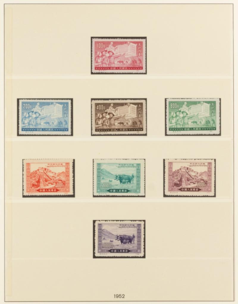 China 1952. Agrarian reform, "Liberation" of Tibet, International Child protection conference, Labor Day, Tun Huang mural paintings. All mint no gum as issues. Michel 133-140 I + II, 141-142A+c and 176-179. Mich 260,- (Image)
