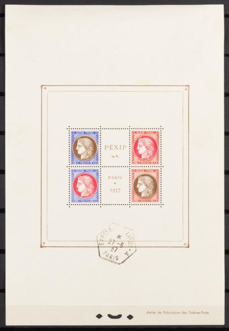 France 1937 PEXIP block with remarks in margins but stamps MNH. Bloc 3. (Image)