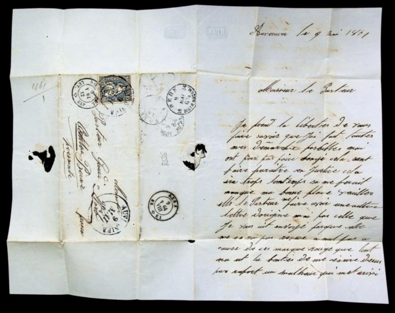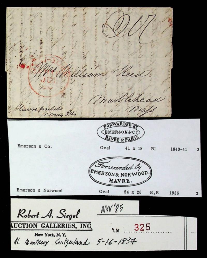 Switzerland Montreux 1837 prestamp cover via France to Marblehead USA w/ Havre & Paris Forwarding Agent's seal, (Image)