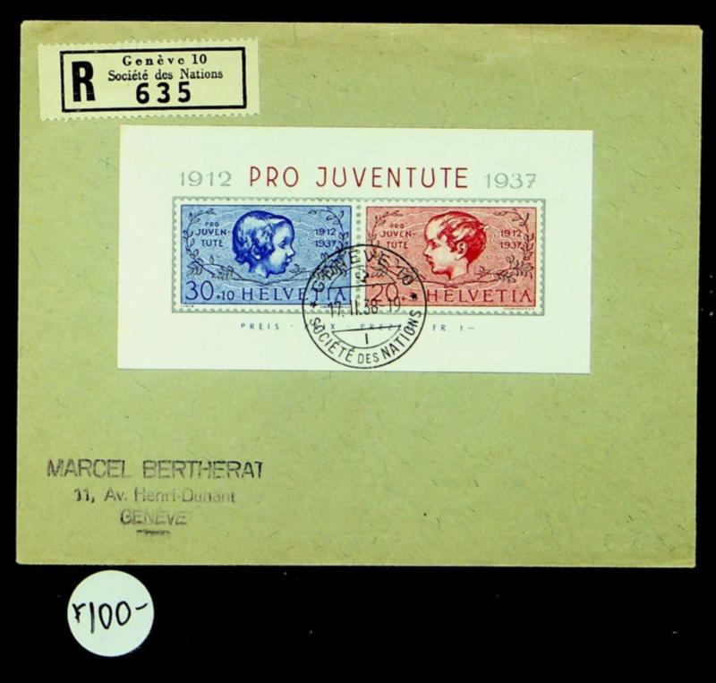Switzerland 1938 Pro Juventute sheet Geneve League of Nation regd cover (Image)