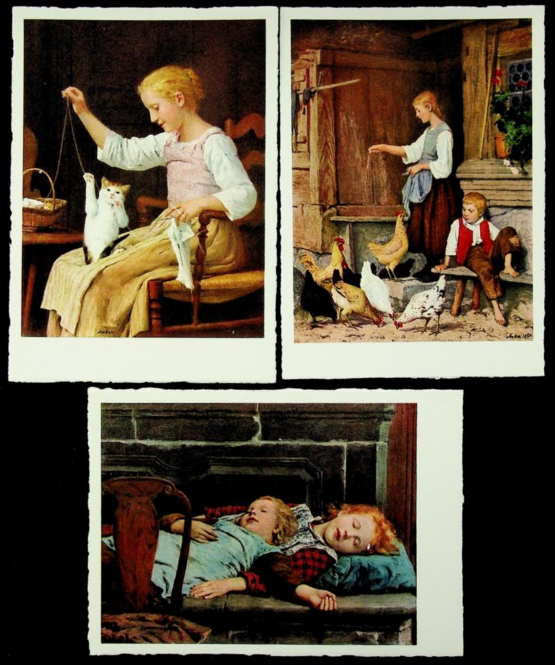 Switzerland 3 unused coloured Charity PPC depicting paintings by Albert Anker (Image)