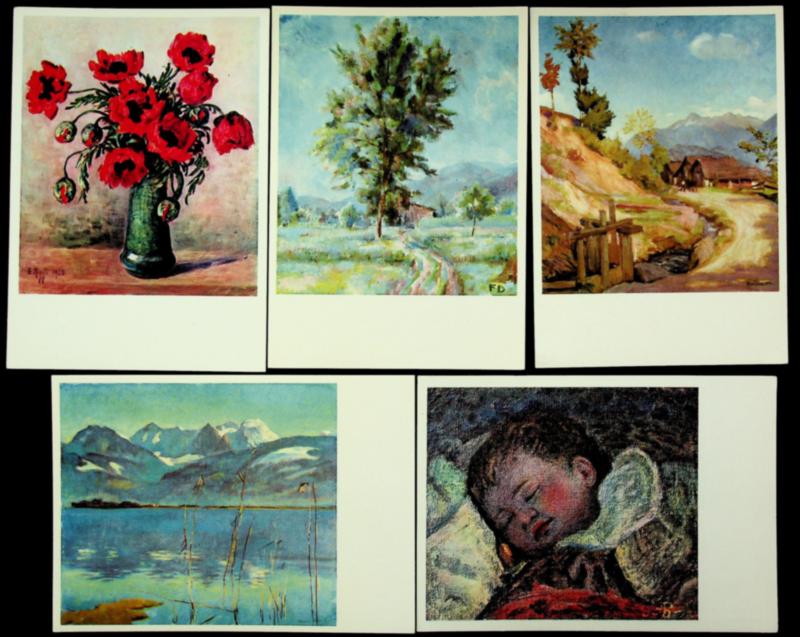 Switzerland 5 unused coloured Pro Infirmis PPC depicting various works of art (Image)
