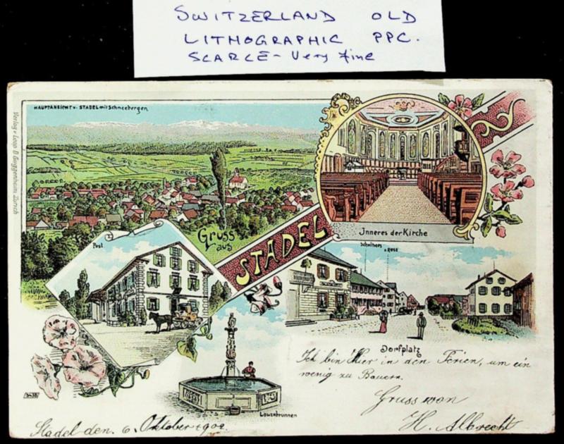 Switzerland 1902 Greetings from Stadel, Lithographic UPU PPC w/ 5c to Zurich (Image)