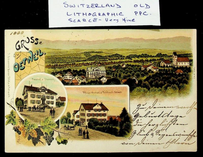 Switzerland 1899 Greetings from Oetwil am See, Lithographic UPU PPC w/ 10c to Lyon France (Image)