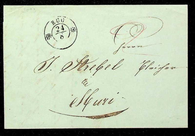 Switzerland 1846 prestamp cover with charge markings from Zug to Muri (Image)