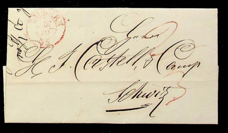 Switzerland 1845 prestamp cover with charge markings in red from Luzern to Schwyz (Image)