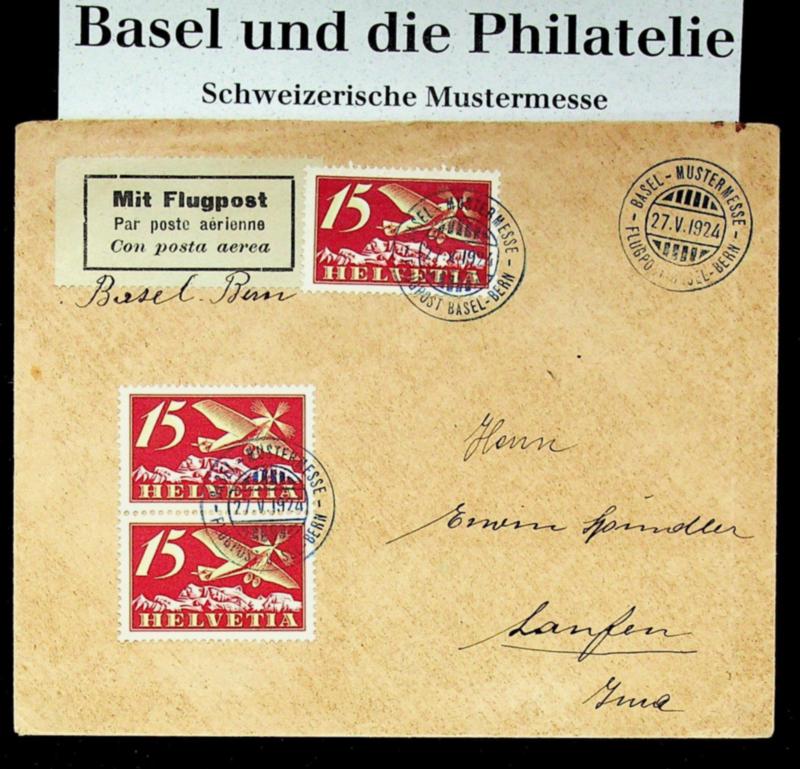 Switzerland 1924 "Schweizer Mustermesse Airmail Basel-Bern" cover w/ 15cx2 to Laufen (Image)