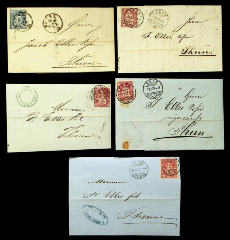 Switzerland 1867-78 group of 5 early covers w/ various cancels to Thun (Image)