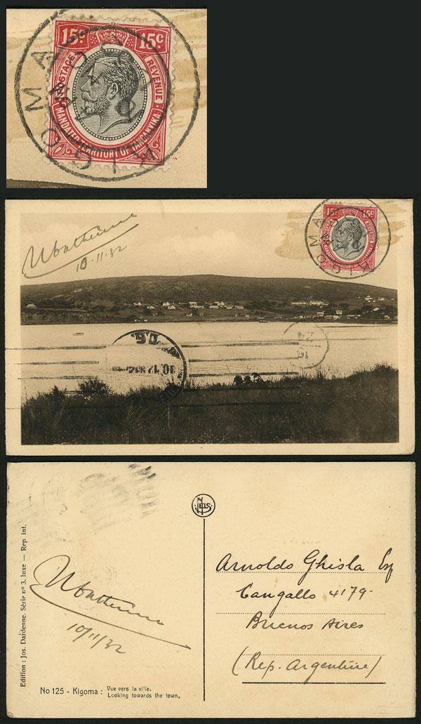 10/NO/1932 Kigoma - Argentina, postcard franked with 15c., with Buenos Aires arrival mark 30/DE applied over the view, VF quality, rare destination! (Image)