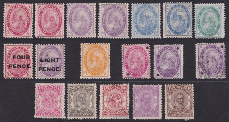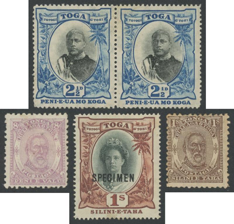 1890s-1960s predominantly mint collection including 1891 George I Stars Overprints 1d carmine unused, 1892 6d orange and Arms & King set the 1d 2d & 1/- unused plus Surcharges 1893 & 1894 sets *, 1895 George II 1d to 7½d set, 1897 Pictorials set * & used plus extra watermark positions and 2½d No Fraction Bar in pair with normal, 1899 Wedding 2mm & 3mm hyphens, 1920-35 Salote set plus 'SPECIMEN' overprints on five values and 2½d with horseshoe puncture, 1923-24 'TWO PENCE' Surcharges set x2 plus extras including on 10d Upright Wmk used & on 2/- Upright Wmk *, 1942-49 Multiple Script CA Wmk set * plus 2/6d & 5/- used, 1953 Pictorials set in Bradbury Wilkinson imprint blocks of 4 **, etc, condition of the earlies a little variable then increasingly fine to very fine, Cat £3000+.