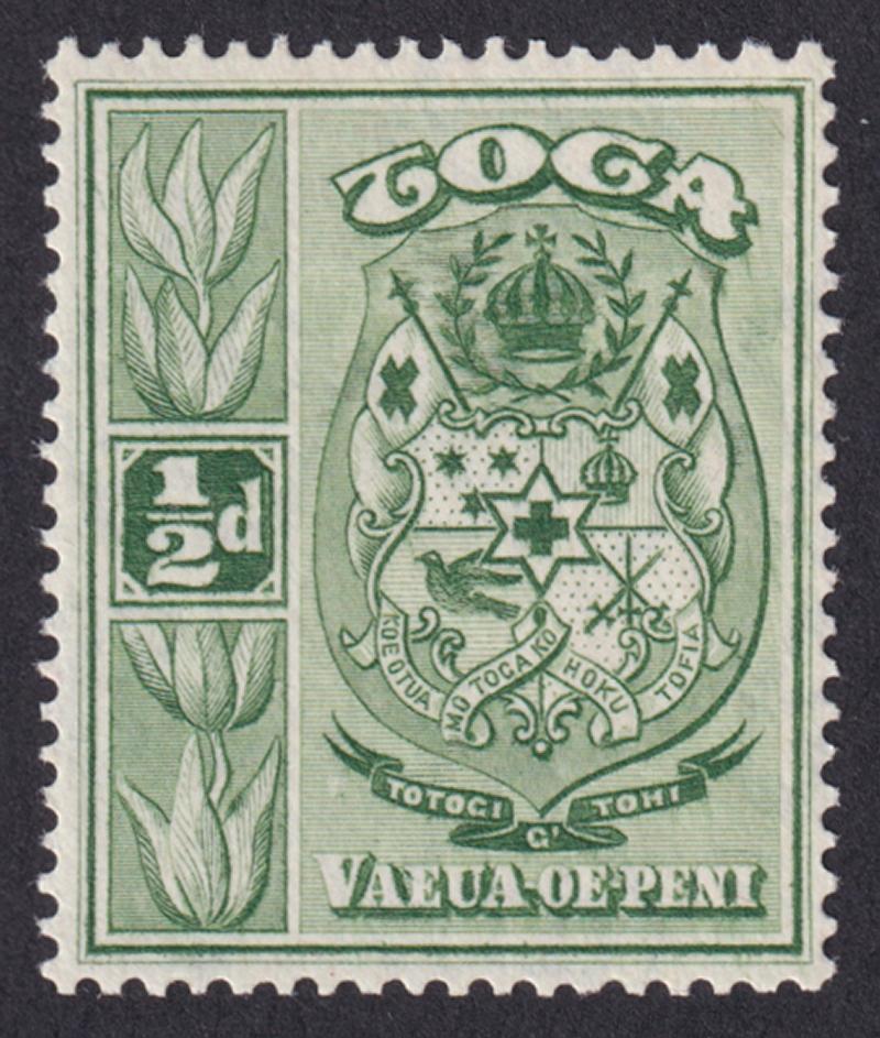 1942-49 Script Wmk ½d Coat of Arms with 'A' Missing from 'CA' in the Watermark SG 74a, very well centred, lightly mounted, Cat £650, for unmounted. (Image1)