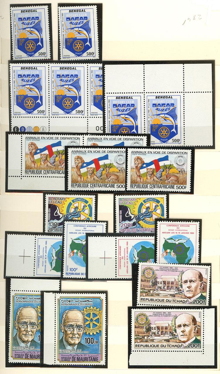 ROTARY: Lot of MNH stamps and sets of excellent quality, moderate to very little duplication, in general with issues related to Rotary 75th anniversary. Very good lot for retail resale with important profits. Yvert catalog value of approximately Euros 1500. The stamps will be arranged in numbered envelopes (one envelope per photo). IMPORTANT: please view ALL the photos of the lot, because all the stamps have been scanned. (Image)