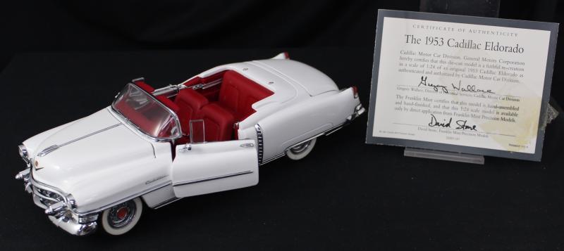 Model Cars 1:24 scale (3) comprising Franklin Mint 1953 Cadillac Eldorado; Danbury Mint 1934 Ford 'The California Kid' & Hot Rod 'Ala Kart', all in original boxes.