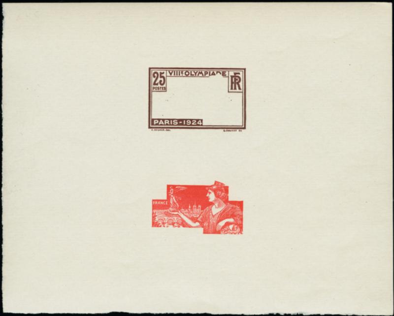 1924, olympic issue 25 c., separate die proofs of frame and vignette together in block format on gummed paper, mint never hinged, Certificate Scheller (2025)