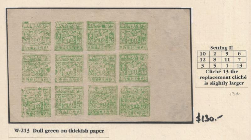 Tibet 1932 4tr complete unused sheet of 12 stamps, Dull green on thick paper with cliche varieties, Rare - Ex. Hillrigl (Image)