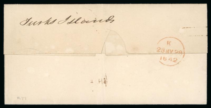 1842 wrapper to the Wesleyan Mission in London, ms "2/" rate, letter numbered by sender "8" at top right, reverse with manuscript "Turks Islands", London 18 MY 42 arrival, very fine.