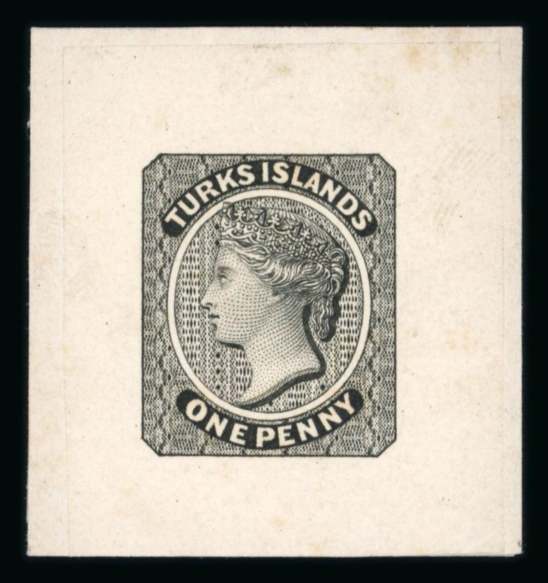 1867 1d plate proof in black on thick paper, plus two reprinted die proofs of the Queen's head in orange on pink and orange on green paper (Image)