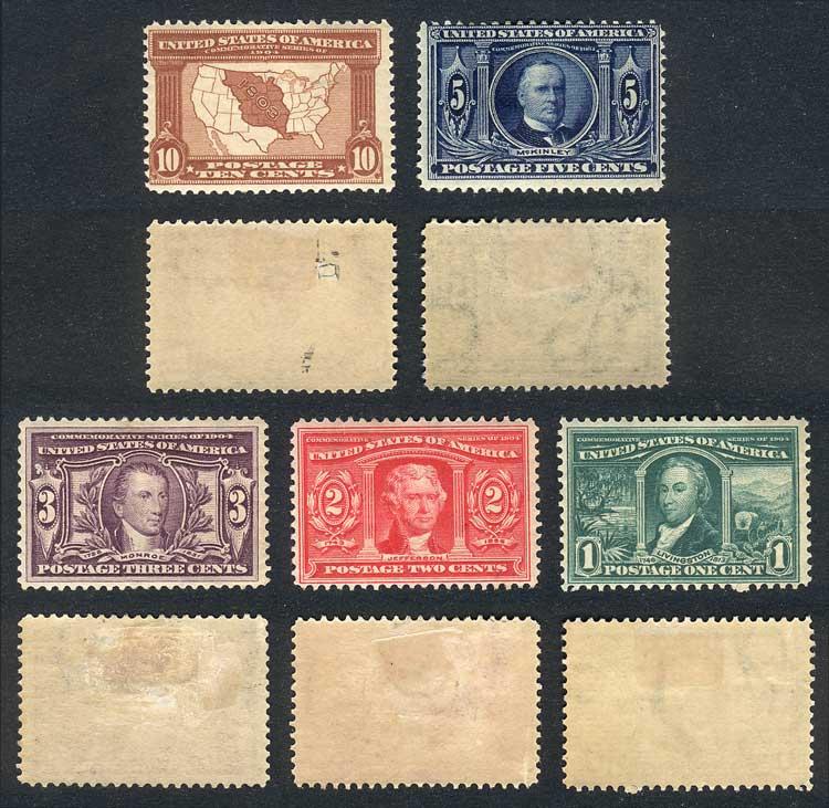 Sc.323/7, 1904 Louisiana Purchase, compl. set of 5 values with hinge marks, fine quality, catalog value US$325. (Image)