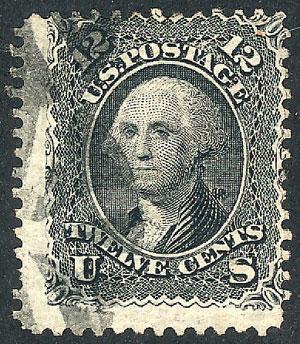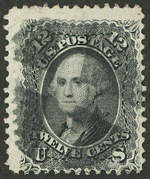 Sc.90, 1861 12c. black with grid E (11 x 13 mm), handsome copy, catalog value US$400 (Image)