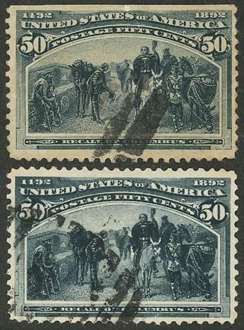 Sc.240, 1893 Columbus 50c. blue, 2 used examples, different shades, very nice! (Image)