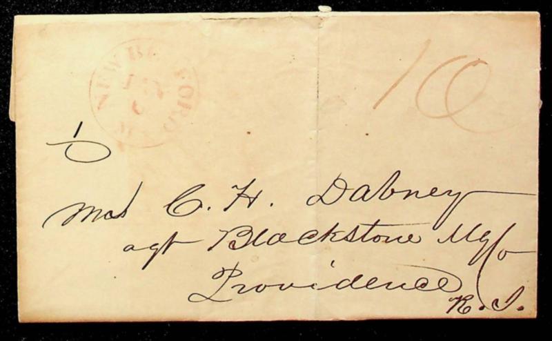 USA 1838 prestamp cover charged "10" from New Bedford Massachusetts to Providence Rhode Island (Image)