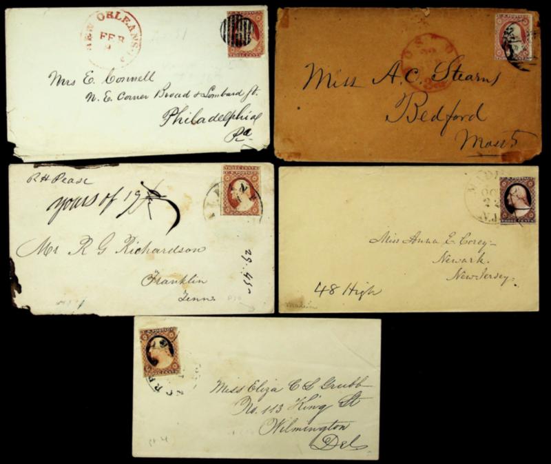 USA early Washington 3cx5 Imperf on 5 covers to various domestic destinations (Image)