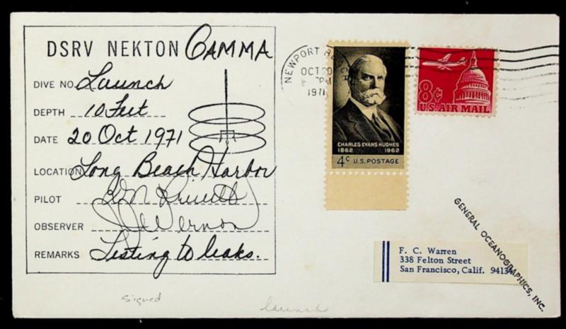 USA 1971 DSRC Nekton Submarine Pilot signed cover w/ "GENERAL OCEANOGRAPHIC INC." cachet from Newport Beach California (Image)
