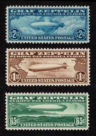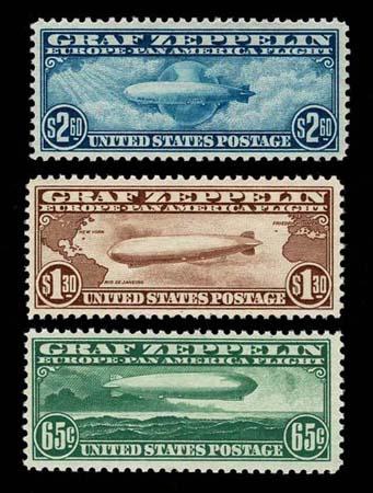 1930, Graf Zeppelin Issue complete set, o.g., nicely centered, Very Fine (Scott C13-C15). Scott $1,080 (Image)