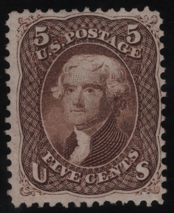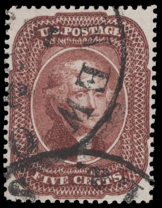 1860, 5c BROWN TYPE II USED GRADED '95', #30A, beautifully centered with neat town cancel, extremely fine-superb, with 2003 PSE cert graded '95', SMQ $2,800.00 (Image)