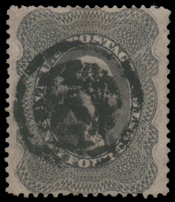 1860, 24c GRAY LILAC BLACK CORK CANCEL, #37, bold strike, reperfed at top, fine-very fine, cat. $400.00 (Image)