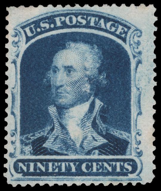 1860, 90c BLUE UNUSED, #39, fresh, without gum, fine-very fine, cat. $1,400.00 (Image)