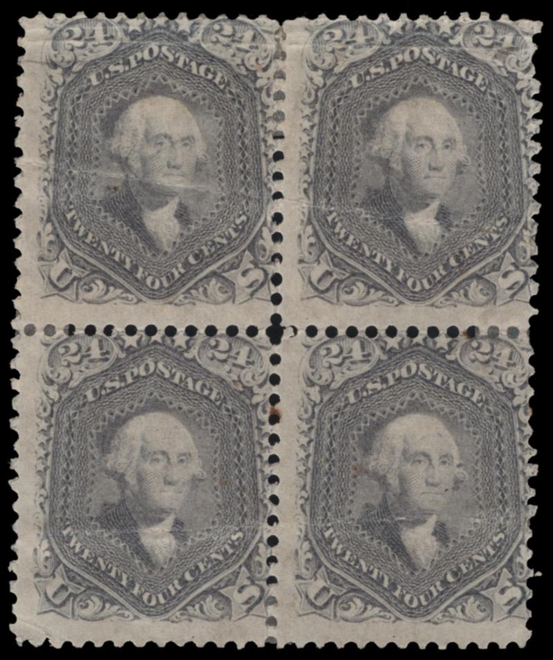 1862, 24c GRAY BLOCK OF FOUR MINT, #78b, fresh color, bit disturbed o.g., horiz. creasing ending in tiny tears, scarce 1861-67 issue multiple, with 2024 William T. Crowe cert., cat. $17,000.00 (Image)