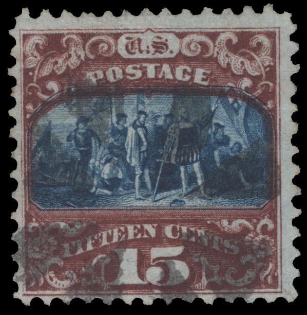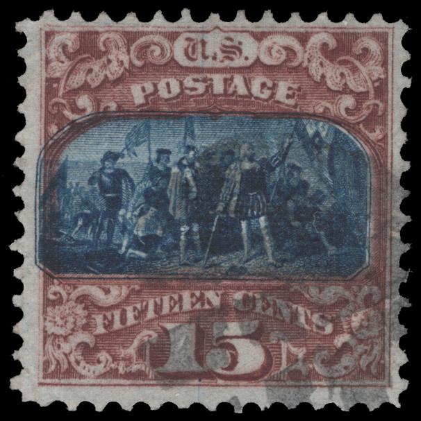 1869, 15c BROWN & BLUE TYPE II USED, #119, cork cancel, tiny corner creases, fine-very fine, with 2024 William T. Crowe cert., cat. $200.00 (Image)