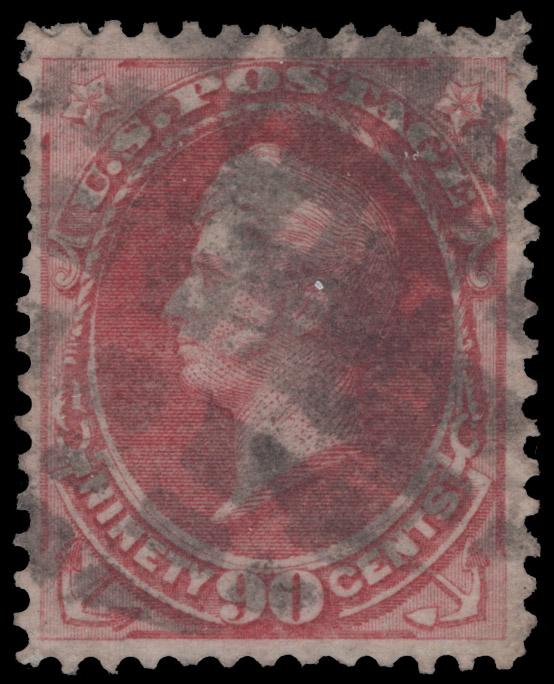 1875, 90c ROSE CARMINE USED, #166, segmented cork cancel, nibbed perf., fine-very fine, with 2024 William T. Crowe cert., cat $325.00 (Image)
