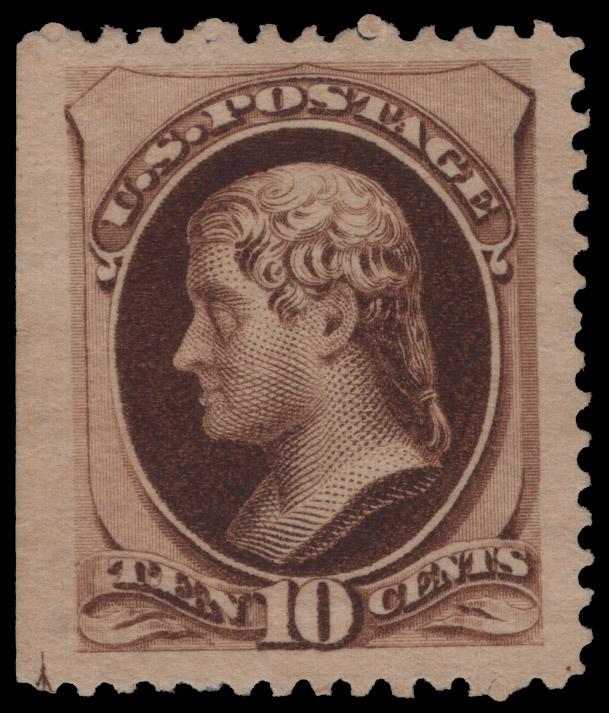 1879, 10c BROWN ON SOFT WITHOUT SECRET MARK UNUSED, #187, natural s.e. at left, couple tiny thin spots, quite a stunning jumbo stamp, cat. $1,000.00 (Image)