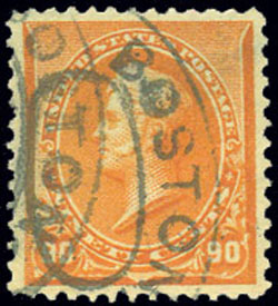 229, 90¢ Orange, VF-XF, with vertical crease at right and tiny right side edge tear, deep rich color Cat($135) (Image)
