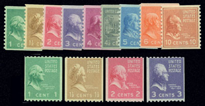 839-51, 1¢-10¢ Presidentials, Complete Coil Set (13), F-VF NH Cat($34) (Image)