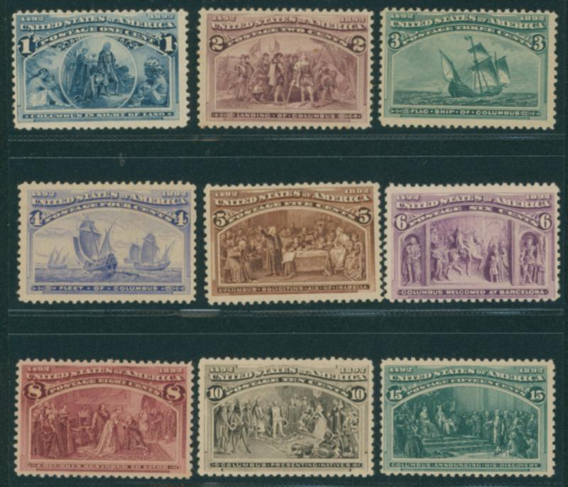 USA 1893 Columbus Exhibit. 1c - 15c , 9 stamps unused hinged, thin spot on the back, catalog value:90,000YEN (Image1)