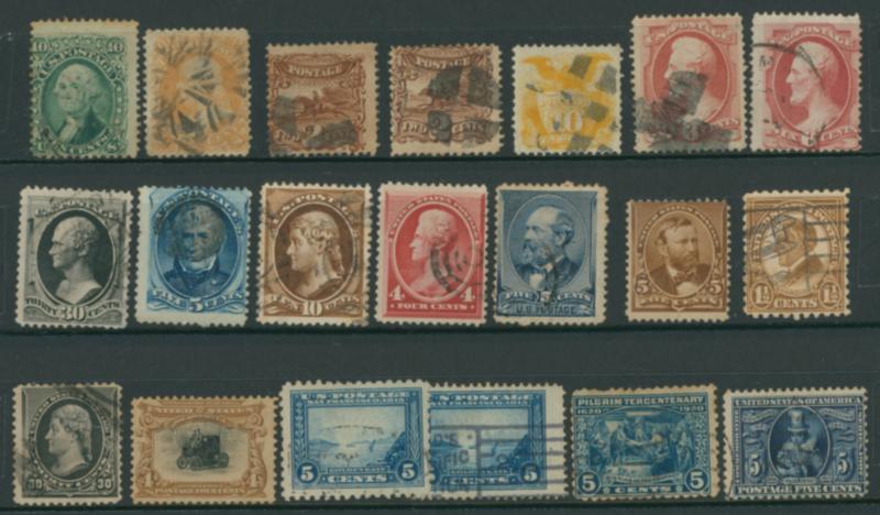 USA 1861-1920s, 20 stamps used stained, thin spot on the back, (Image1)