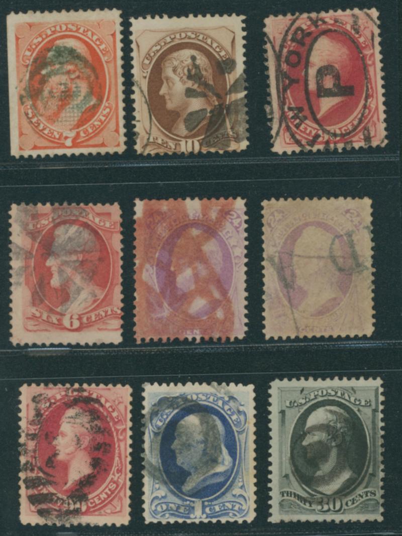 USA 1870-1871 1c 6c 7c 10c 24c*2 30c 90c*2 used stained, catalog value:300,000YEN (Image1)