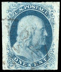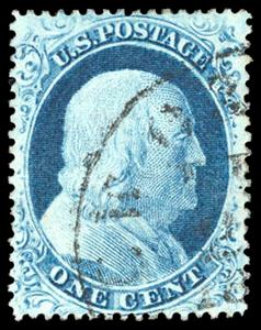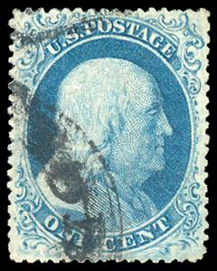 ONE OF THE FINEST USED EXAMPLES OF THE 1857 1¢ FRANKLIN TYPE II ISSUES.