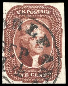 1858, 5¢ Indian red, type I. Light New Orleans cds, rich deep color with sharp impression, Very Fine and choice, with 2009 P.F. certificate. Scott No. 28A; $3,750. US$0 (Image)