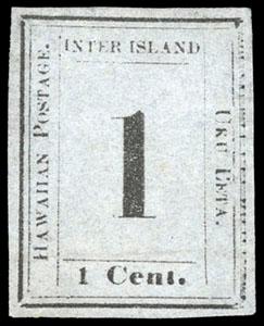 Hawaii, 1863, Numeral, 1¢ black on grayish. Plate 4-A, type X, position 10, no gum, full even margins, fresh and Very Fine. Scott No. 15; $650. US$0 (Image)