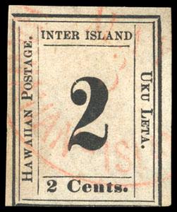 Hawaii, 1863, Numeral, 2¢ black on grayish. Plate 3-C, type I, position 3, red Honolulu town cancel (243.03), margins large to shaving frameline at bottom, Fine. Scott No. 16; $850. US$0 (Image)