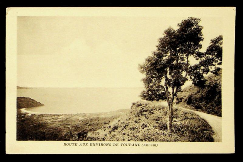Vietnam unused black and white PPC depicting road around Tourane (Annam) (Image)
