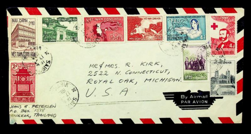 Vietnam 1963 9v including Red Cross on airmail cover from Saigon to Royal Oak Michigan USA (Image)
